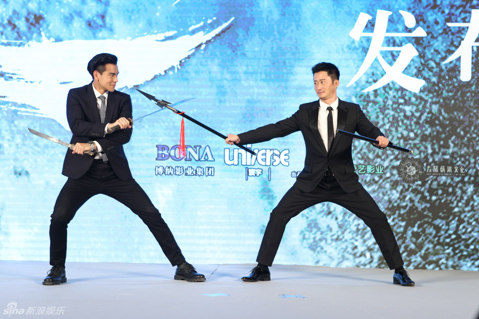 不过吴京表示更倾向于将他的角色定义为“灰色”:“我们这个戏里没有正反派之分,可能在黑白之间还有一层浅浅的灰色,那个就是我这个角色的定义。”这似乎也暗示了“兄弟阋墙”的剧情,在戏中有不少过招桥段的两位师兄弟,还在发布会上分别拿起片中武器,摆出各种Pose,用静态的jpg格式上演了一场表情包大战。