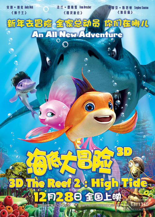 由好莱坞制作的进口3D动画片《海底大冒险》今日公布档期,影片将定于2013年12月28日全国公映。作为元旦档期中唯一的进口动画片,将在全国以3D、2D、英文原版、中文配音四个版本同步公映。