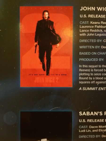 距离第二部《疾速追杀:第二章》上映还有近一年,近日有网友在CinemaCon拍了张影片宣传海报,基努里维斯造型熟悉。